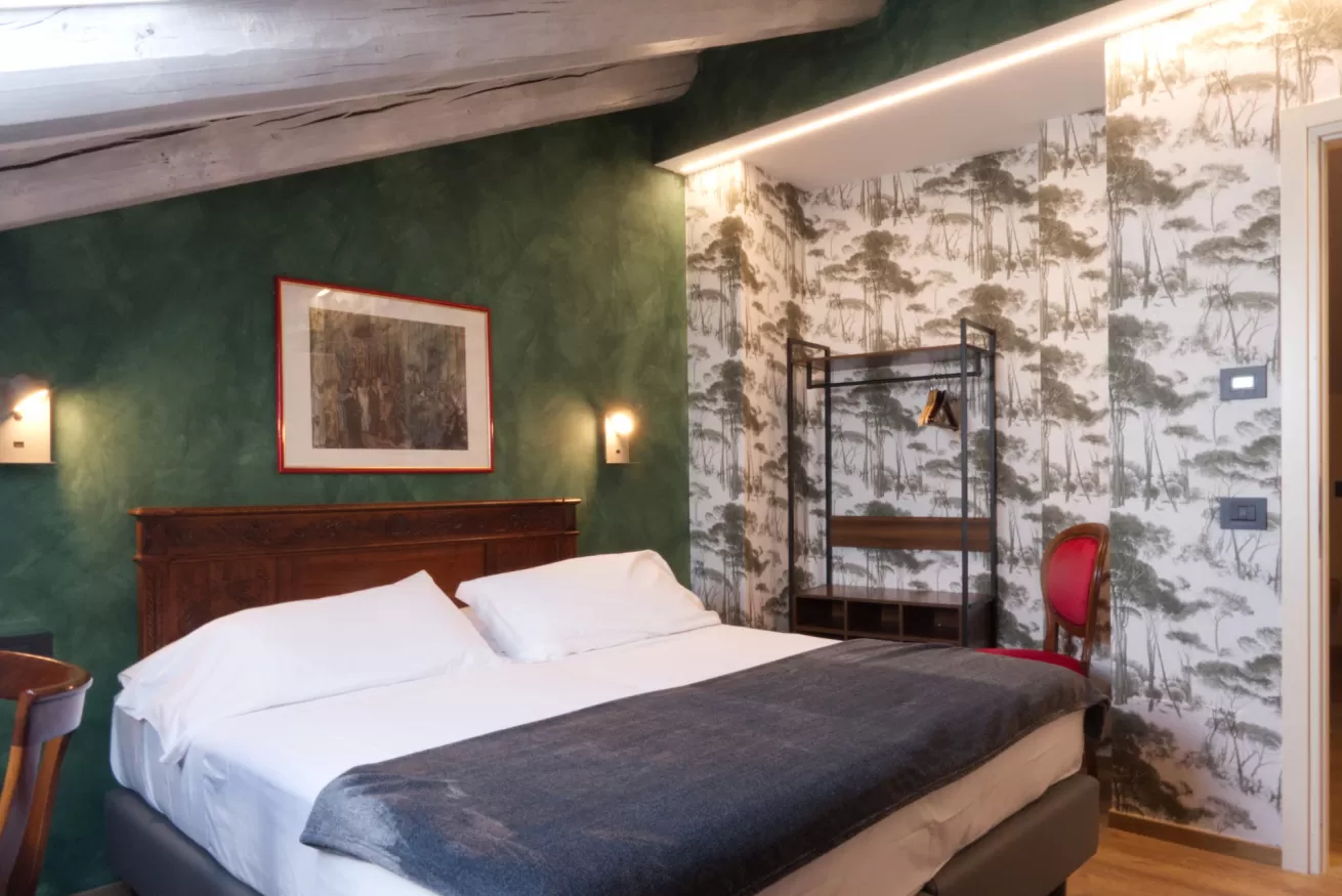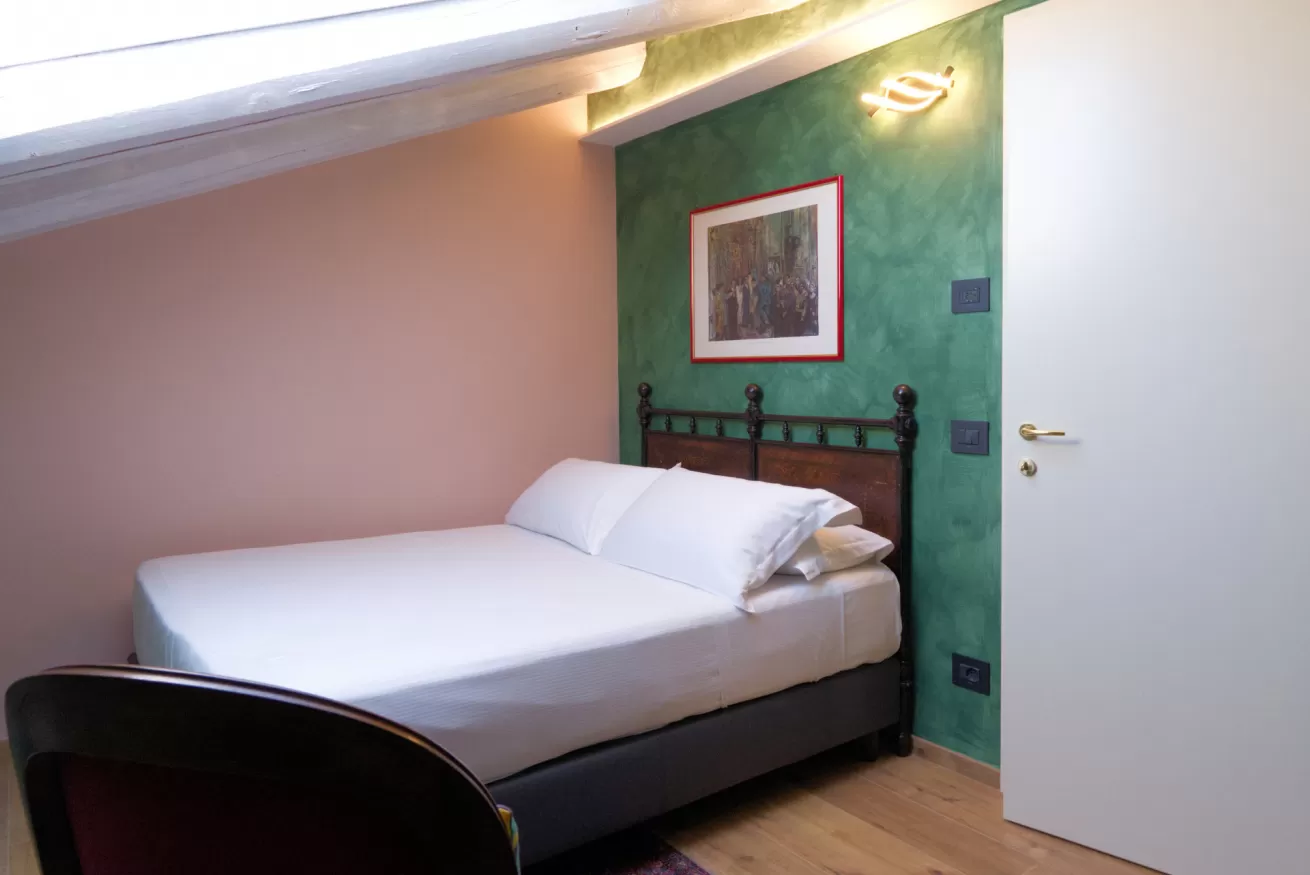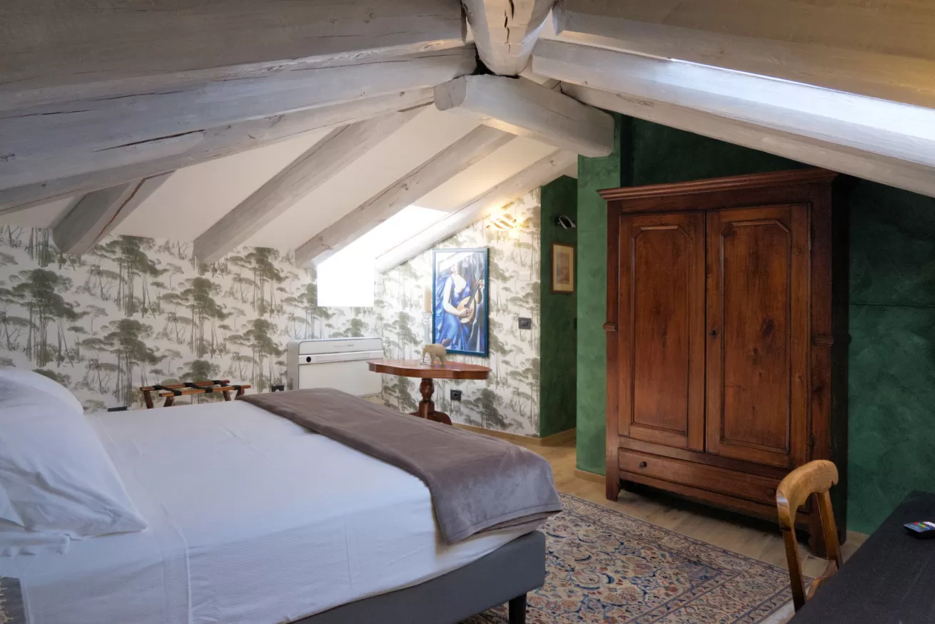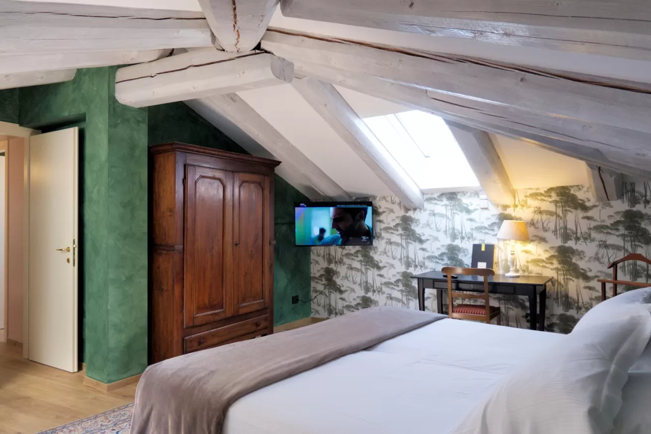 Le camere e le suites sono tutte dislocate al terzo piano e sono raggiungibili con ascensore fino al secondo piano per percorrere a piedi una comoda rampa di scale. Tutti gli alloggi dispongono di: