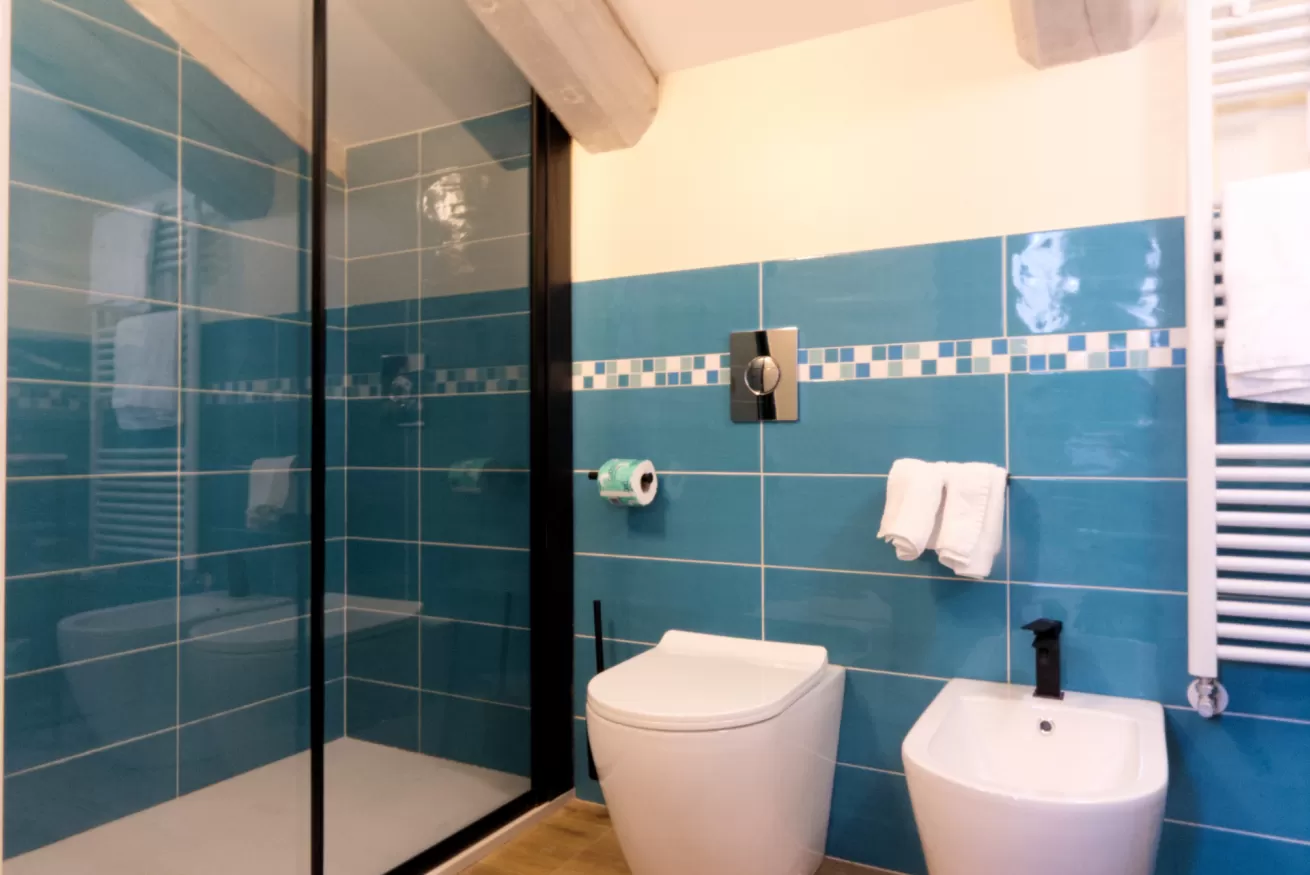 - bagno con doccia, toilette, bidè e asciugacapelli