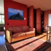 La suite con balcone e vista panoramica ha ingresso in soggiorno con piccolo angolo cottura e divano letto per due. Dispone inoltre di camera con letto matrimoniale e bagno con doccia, toilette e bidet. Dall'alloggio si accede al balcone privato, con tavolino e due sedie, da cui si gode della vista panoramica sulla vallata e sui monti circostanti.